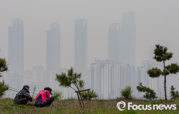 (인천=포커스뉴스) 몽골과 중국 북부에서 발생한 황사가 서해안으로 유입된 22일 오후 인천시 연수구 동춘터널에서 바라본 송도국제도시가 황사와 안개에 갇혀 있다.