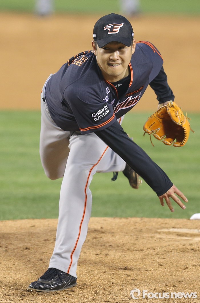 (서울=포커스뉴스) 22일 서울 잠실구장에서 열린 2016 프로야구 한화-두산 경기에서 1회말 한화 선발투수 송은범이 투구하고 있다.