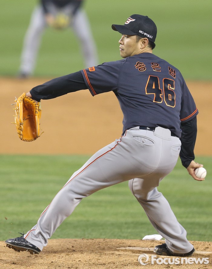 (서울=포커스뉴스) 22일 서울 잠실구장에서 열린 2016 프로야구 한화-두산 경기에서 1회말 한화 선발투수 송은범이 투구하고 있다
