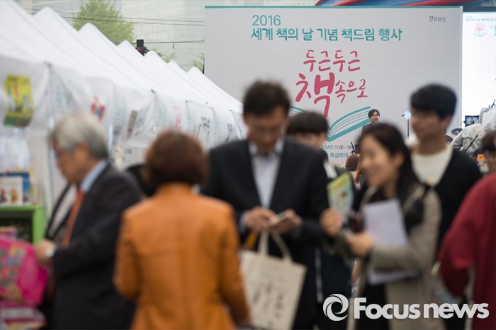 (서울=포커스뉴스) 세계 책의 날을 하루 앞둔 22일 오후 서울 중구 태평로 청계광장에서 2016 세계 책의 날 기념 '두근두근 책 속으로' 책드림 날 행사가 열리고 있다.