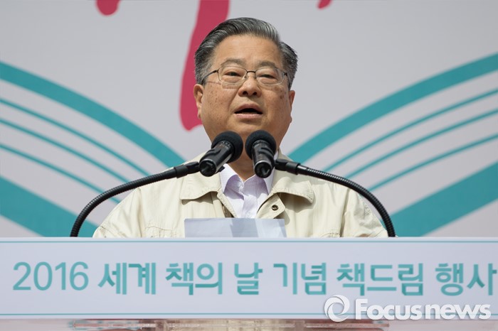 (서울=포커스뉴스)유네스코가 1995년 제정한 ‘세계 책과 저작권의 날’인 23일 오전 서울 중구 청계광장에서 열린 2016 세계 책의 날 기념 책드림 행사 '두근두근 책 속으로'에서 이기성 한국출판문화산업진흥원 원장이 개회사를 하고 있다.