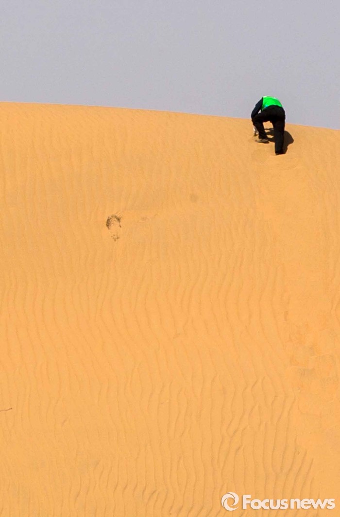 (다라더치/중국=포커스뉴스) 24일 오전 중국 내몽고 다라더치 쿠부치사막에서 한ㆍ중ㆍ일 대학생들로 구성된 2016 미래숲 15기 녹색봉사단원들이 사막트래킹을 하고 있다. 미래숲 녹색봉사단은 이번 봉사활동을 통해 황폐화된 사막에 나무 심기 및 각국 청년들과 우호를 증진을 위한 교류 활동을 전개할 예정이다.