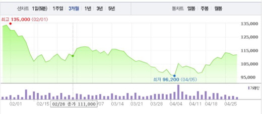 성 연구원은 “초기 관객 반응은 좋고, CGV의 2분기 연결 실적에 큰 도움을 주는 영화가 될 가능성이 높다”며 “CJ CGV에 투자의견 ‘매수’, 목표주가 14만원을 유지한다”고 말했다.CJ CGV 주가흐름<사진출처=네이버 캡쳐>