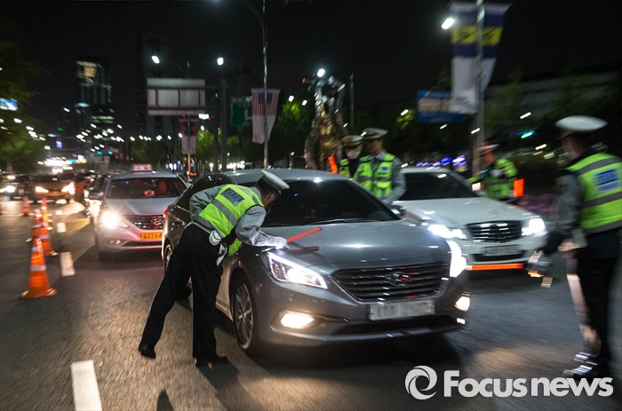 (서울=포커스뉴스) 대검찰청과 경찰청이 음주운전 근절을 위한 '음주운전사범 단속 및 처벌 강화 방안'을 시행한 25일 오후 서울 송파구 인근에서 경찰이 음주단속을 하던 중 음주운전이 의심되는 한 차량을 제지하고 있다.