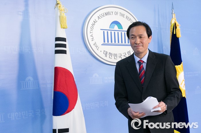 (서울=포커스뉴스) 우상호 더불어민주당 의원이 29일 오후 서울 여의도 국회 정론관에서 당 원내대표 출마 기자회견을 마친 뒤, 단상을 내려오고 있다.