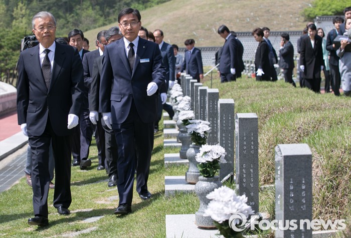 (광주=포커스뉴스) 김종인 더불어민주당 비대위 대표가 25일 오전 광주 북구 국립 5·18민주묘지를 방문해 20대 총선 당선인 및 광주·전남지역 낙선 인사들과 열사 묘역을 둘러보고 있다.