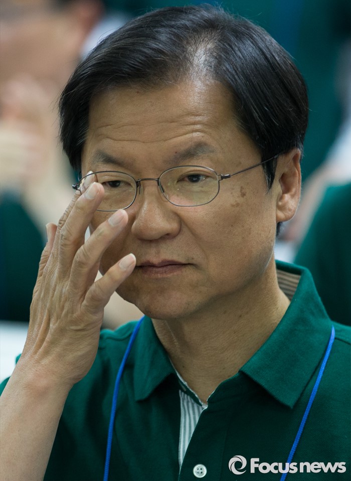 (양평=포커스뉴스) 천정배 국민의당 공동대표가 26일 오후 경기도 양평 한화리조트에서 열린 국민의당 20대 총선 당선자 워크숍에 참석해 눈을 만지고 있다.