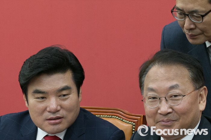 (서울=포커스뉴스) 유일호(앞줄 오른쪽) 경제부총리 겸 기획재정부 장관이 29일 오전 서울 여의도 국회 새누리당 원내대표실을 방문해, 원유철(왼쪽) 대표최고위원 권한대행과 대화하고 있다. 이날 유 부총리는 여야 3당 원내지도부를 면담하고, 경제활성화법 등 쟁점법안 처리를 촉구했다.