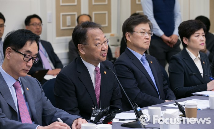 (서울=포커스뉴스) 유일호(왼쪽 두번째) 경제부총리가 27일 오전 서울 여의도 국회 귀빈식당에서 열린 청년 · 여성 일자리대책 당정협의에 참석해, 발언하고 있다. 왼쪽부터 이준식 사회부총리, 유 부총리, 최양희 미래창조과학부 장관, 강은희 여성가족부 장관.