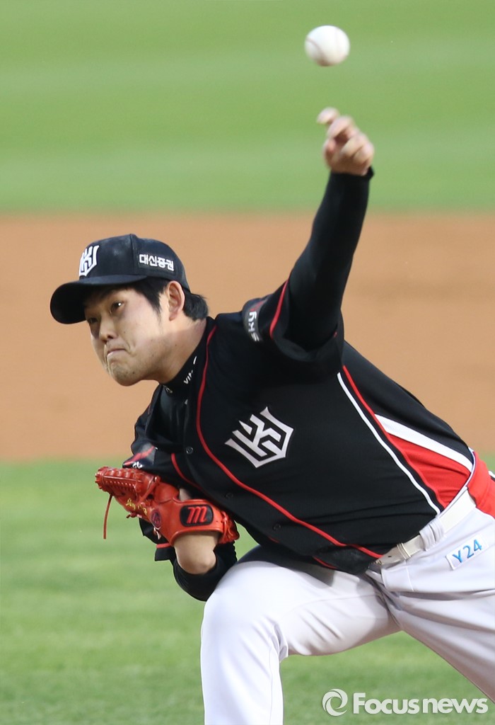 (서울=포커스뉴스) 29일 서울 잠실구장에서 열린 2016 프로야구 kt-LG 경기에서 1회말 kt 선발투수 정대현이 투구하고 있다.