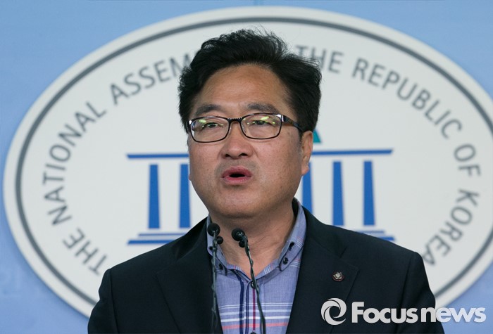 (서울=포커스뉴스) 우원식 더불어민주당 의원이 29일 오후 서울 여의도 국회 정론관에서 원내대표 출마 기자회견을 하고 있다.