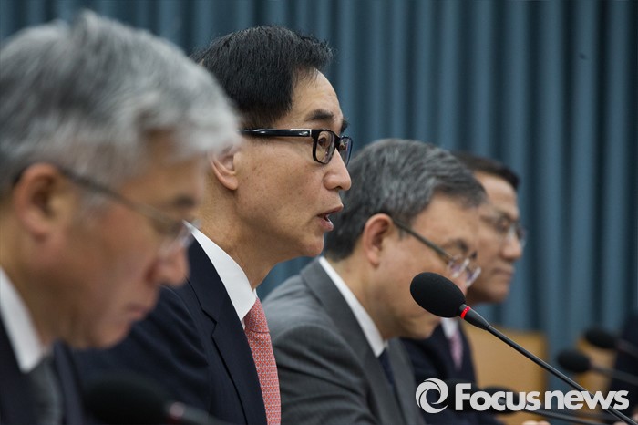 (서울=포커스뉴스) 25일 오전 서울 종로구 정부서울청사에서 열린 사회관계장관회의에서 이준식 사회부총리 겸 교육부장관이 아동학대, 자유학기제 관련 모두발언을 하고 있다.