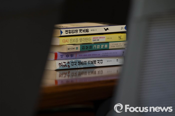 (김해=포커스뉴스) 고 노무현 전 대통령 서거 7주기를 앞두고 1일 오전 노 전 대통령의 사저가 공개되고 있다. 서재 책상위에 노 전 대통령이 읽던 책들이 놓여져 있다.