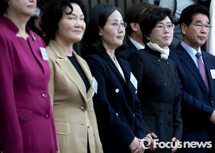 (서울=포커스뉴스) 26일 오전 서울 여의도 국회에서 열린 새누리당 20대 총선 당선자 워크숍에 참석한 최연혜(오른쪽 두번째) 등 비례대표 당선인들이 인사하고 있다.