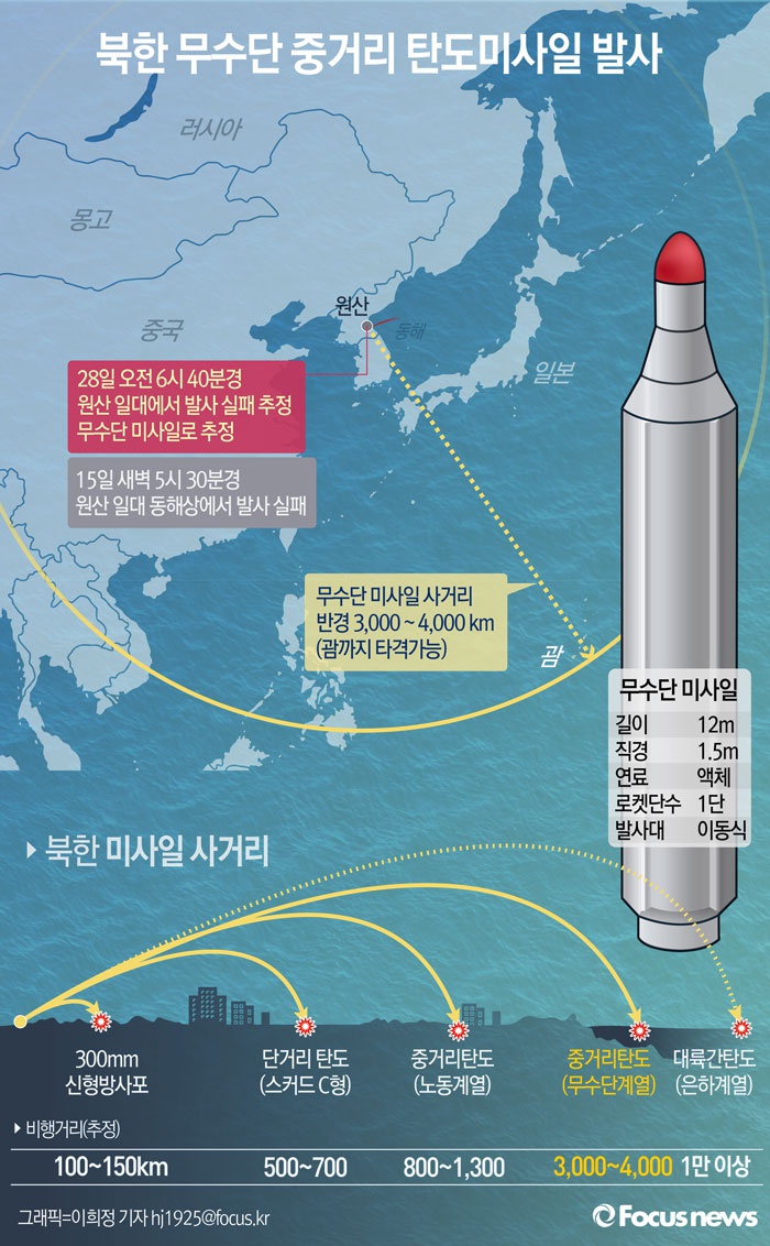 | △ [그래픽] 북한 무수단 중거리 탄도미사일 발사 |