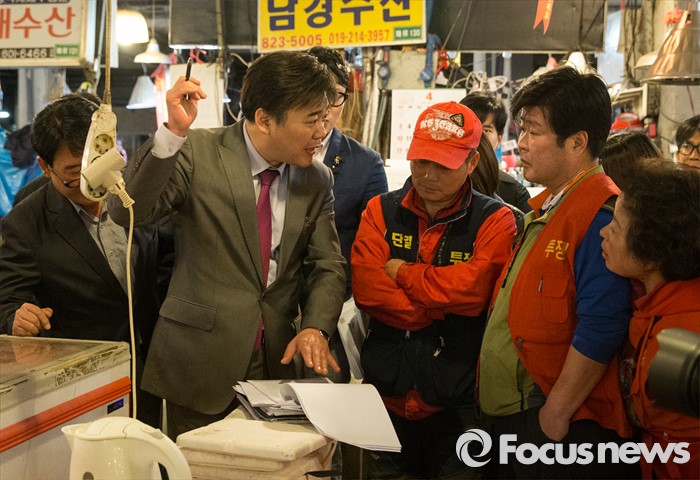 (서울=포커스뉴스) 27일 오전 서울 동작구 노량진 수산시장에서 법원 공무원이 점유이전금지가처분 집행에 대한 설명을 상인들에게 하고 있다.