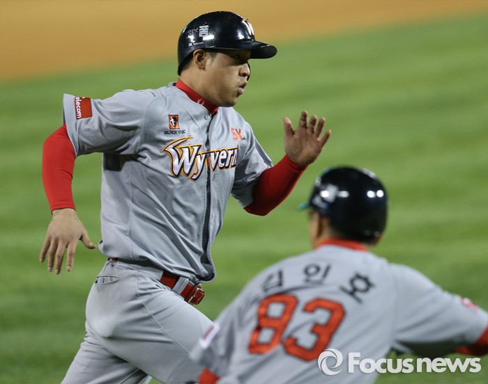(서울=포커스뉴스) 27일 서울 잠실구장에서 열린 2016 프로야구 SK-두산 경기 6회초 2사 1루에서 SK 1루주자 최정이 정의윤의 좌익수 왼쪽으로 빠지는 2루타때 3루를 돌아 홈을 향해 전력질주하고 있다.