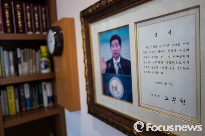 1일 오전 경남 김해시 봉하마을에 위치한 고 노무현 전 대통령의 사저 '지붕 낮은 집'의 서재가 일반인에게 공개되고 있다. 사저는 고 노 전 대통령 부인 권양숙 봉하재단 이사장이 지난해 7월 거처를 옮기면서 일반인에게 공개 준비를 시작해 시민들에게 개방을 하게됐다.
