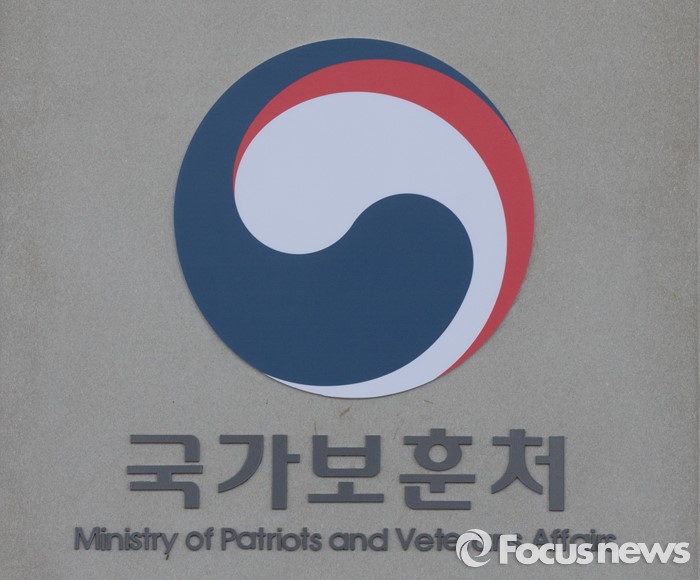 (세종=포커스뉴스) 25일 오전 세종시 정부세종청사 국가보훈처 입구에 국가보훈처 상징로고가 설치돼 있다.