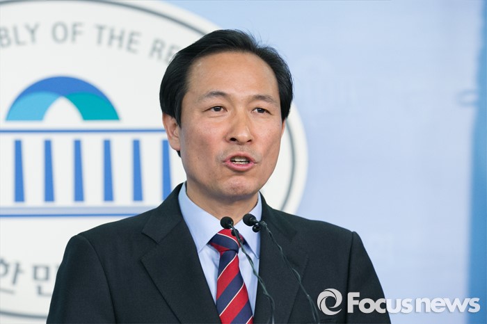 (서울=포커스뉴스) 우상호 더불어민주당 의원이 29일 오후 서울 여의도 국회 정론관에서 당 원내대표 출마 기자회견을 하고 있다.