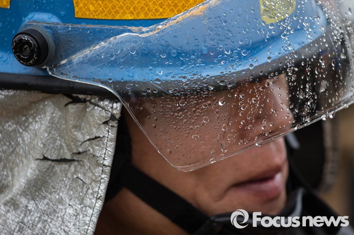 (서울=포커스뉴스) 27일 오전 서울 영등포구 여의도 한강공원 원효대교 일대에서 '수도 서울 민․관․군 합동 대규모 복합재난 가상훈련'에 참가한 소방관이 훈련에 임하고 있다.