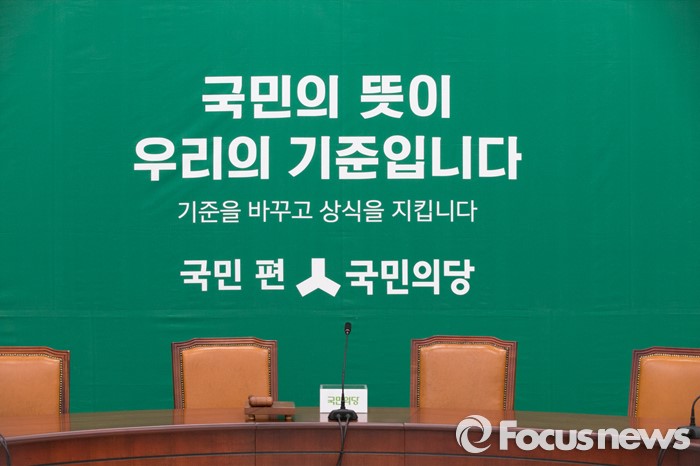 (서울=포커스뉴스) 25일 오전 서울 여의도 국회본청에 새롭게 자리한 국민의당 회의실이 본격적인 회의를 위해 준비된 모습을 하고 있다.