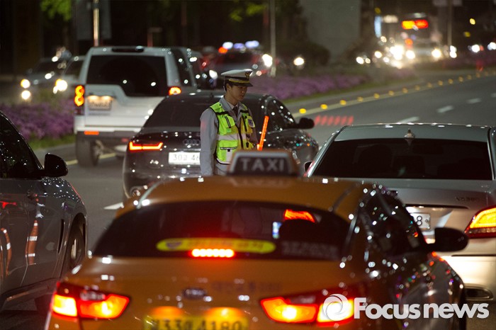 (서울=포커스뉴스) 대검찰청과 경찰청이 음주운전 근절을 위한 '음주운전사범 단속 및 처벌 강화 방안'을 시행한 25일 오후 서울 송파구 인근에서 경찰이 음주단속을 하고 있다.