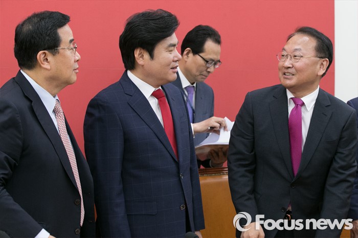 | △ 與 원내지도부와 대화하는 유일호 부총리 |