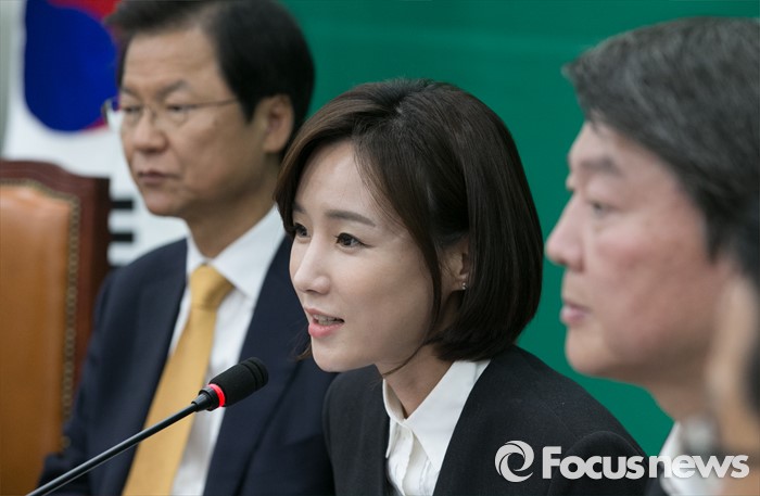 (서울=포커스뉴스) 2일 오전 서울 여의도 국회에서 열린 국민의당 최고위원회의에 국민대표 직함으로 참석한 故 가수 신해철의 아내 윤원희 씨가 '의료사고 피해구제 및 의료분쟁 조정 등에 관한 법률 일부개정법률안(일명 신해철법)' 처리를 호소하고 있다. 왼쪽부터 천정배 공동대표, 윤 씨, 안철수 상임공동대표.