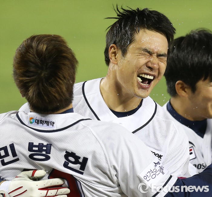 | △ 역전 끝내기 홈런친 두산 김재환 |