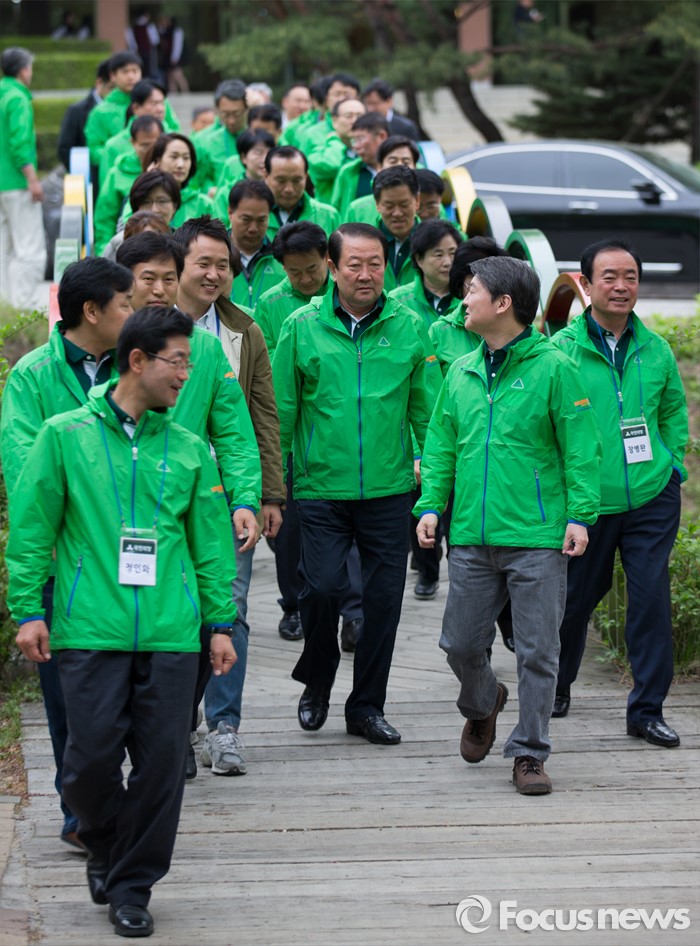 (양평=포커스뉴스) 국민의당 20대 총선 당선자 워크숍 이틀째인 27일 오전 경기도 양평 한화리조트에서 안철수 국민의당 상임공동대표를 비롯한 당선인들이 아침 산책을 하고 있다.