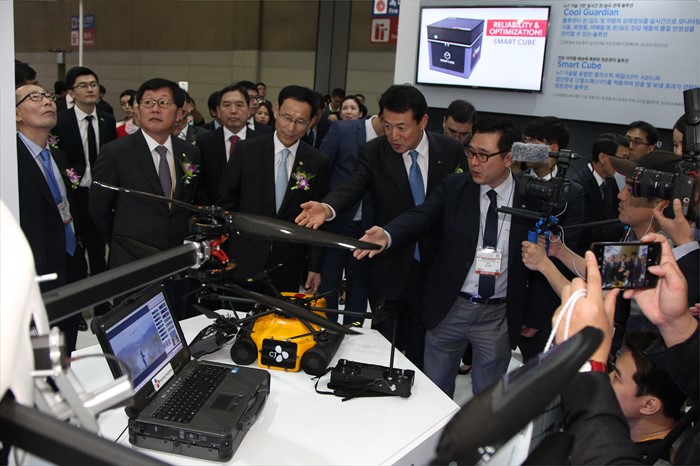 (고양=포커스뉴스) 최정호 국토교통부 2차관이 26일 경기 고양시 일산 킨텍스에서 열린 국제물류산업전 개막식에 전시관을 둘러보고 있다. <사진제공=국토교통부>