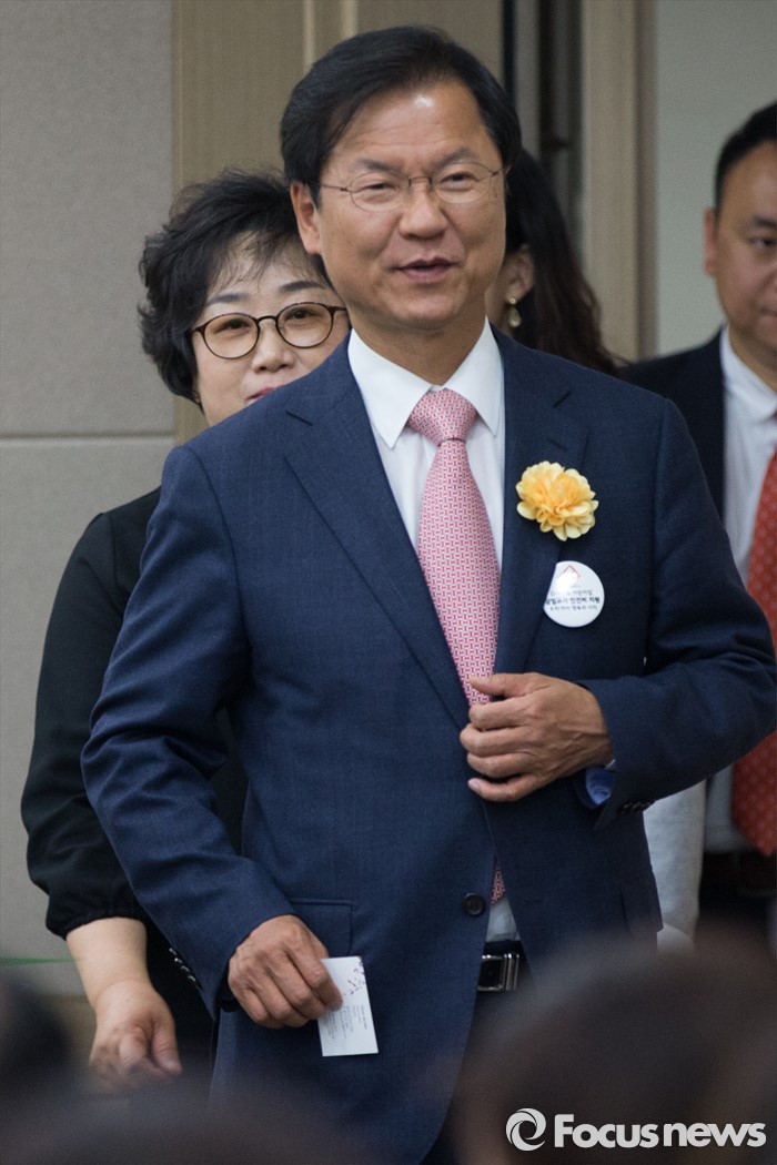 (서울=포커스뉴스) 27일 오후 서울 영등포구 이룸센터에서 열린 한국가정어린이집연합회 정기총회에 천정배 국민의당 공동대표가 참석하기 위해 입장하고 있다.