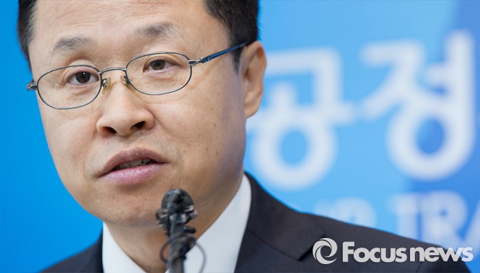 (세종=포커스뉴스) 26일 오전 세종시 정부세종청사 공정거래위원회 기자실에서 김성환 카르텔조사국장이 LNG 저장탱크 건설공사 입찰담합한 13개 건설사를 적발, 제재했다고 밝히고 있다.
