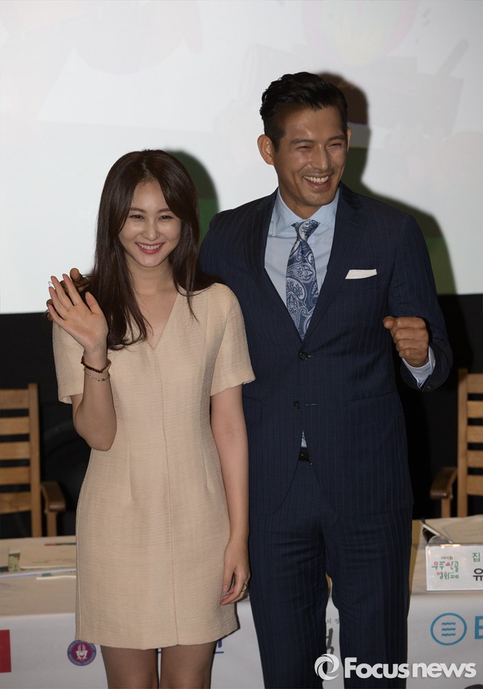 (서울=포커스뉴스) 26일 오전 서울 동작구 아트나인에서 열린 '제4회 무주산골 영화제' 기자간담회에 참석한 배우 손은서(왼쪽)와 오지호가 포토타임을 갖고 있다.
