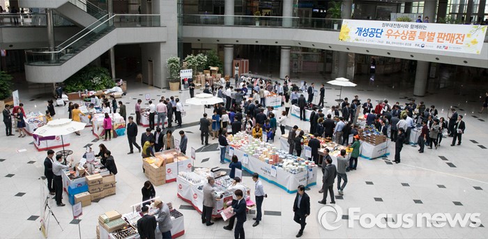 (대전=포커스뉴스) 28일 오전 정부대전청사 중앙홀에 마련된 개성공단 우수상품 특별판매전에서 공무원들이 제품을 살피고 있다. 개성공단 우수상품 특별판매전은 개성공단 입주기업 피해를 최소화 하기 위해 중소기업청이 주최했다.
