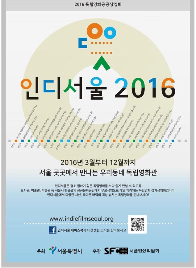 인디서울 2016의 상영작과 공공상영회 일정 등 자세한 정보는 공식홈페이지(www.indiefilmseoul.org))와 페이스북(www.facebook.co./indiefilmseoul)을 통해 확인할 수 있다.<사진제공=서울시청>독립영화가 상영되는 29개 공공시설과 상영일정. <표제공=서울시청>