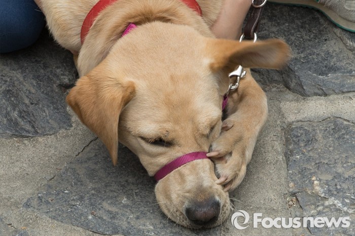 (서울=포커스뉴스) 27일 오전 서울 청계천에서 삼성화재안내견학교 훈련사들과 안내견들이 시민들과 함께 '안내견과의 만남' 행사를 하고 있다.