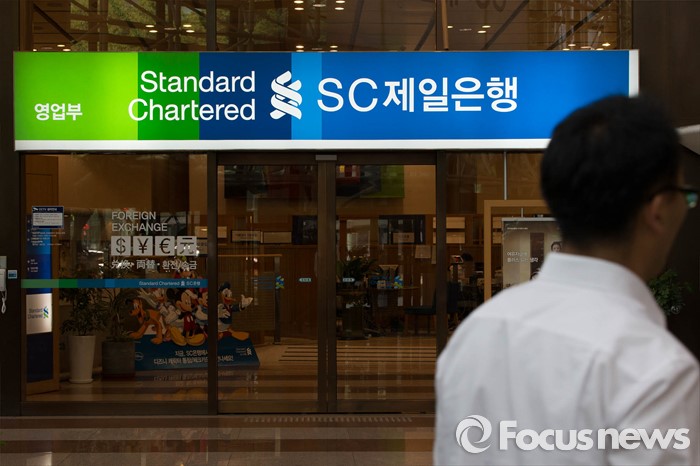 (서울=포커스뉴스) 지난 6일 SC제일은행은 브랜드명의를 '한국SC은행'에서 'SC제일은행'으로 바꿨다. 28일 오후 서울 종로구 SC제일은행 본점에 새로운 간판이 걸려있다.