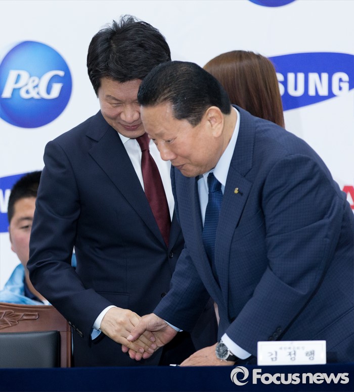 | △ 악수하는 김정행-정몽규 |