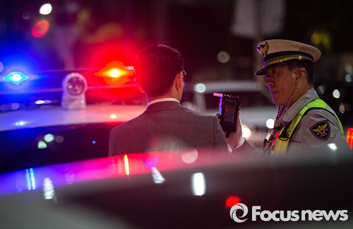 (서울=포커스뉴스) 대검찰청과 경찰청이 음주운전 근절을 위한 '음주운전사범 단속 및 처벌 강화 방안'을 첫 시행한 25일 오후 서울 송파구 인근에서 경찰이 음주단속에 적발된 시민에게 음주 측정기 테스트를 하고 있다.