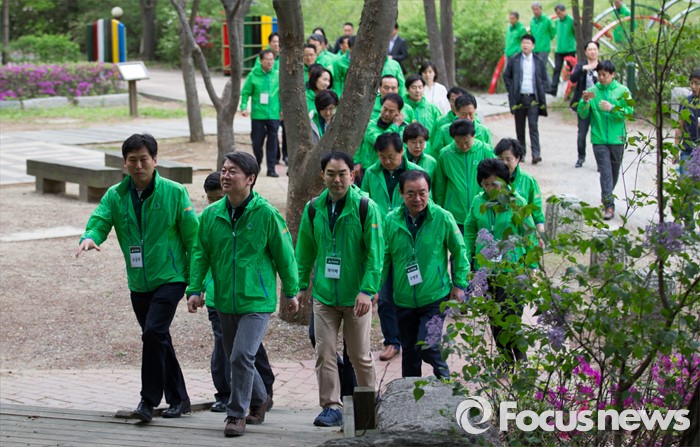 (양평=포커스뉴스) 국민의당 20대 총선 당선자 워크숍 이틀째인 27일 오전 경기도 양평 한화리조트에서 안철수 국민의당 상임공동대표를 비롯한 당선인들이 아침 산책을 하고 있다.