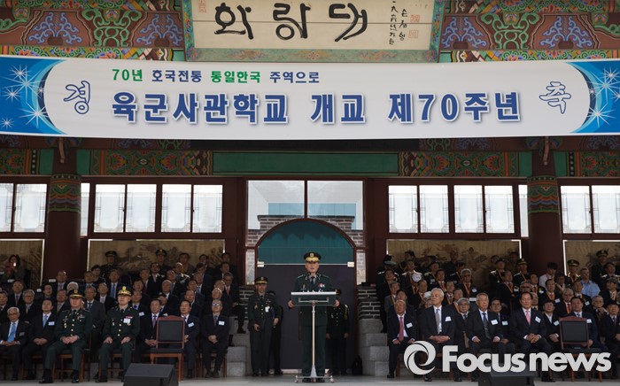 (서울=포커스뉴스) 29일 오후 서울 노원구 육군사관학교에서 열린 개교 70주년 기념식에서 최병로 육군사관학교장이 기념사를 하고 있다.
