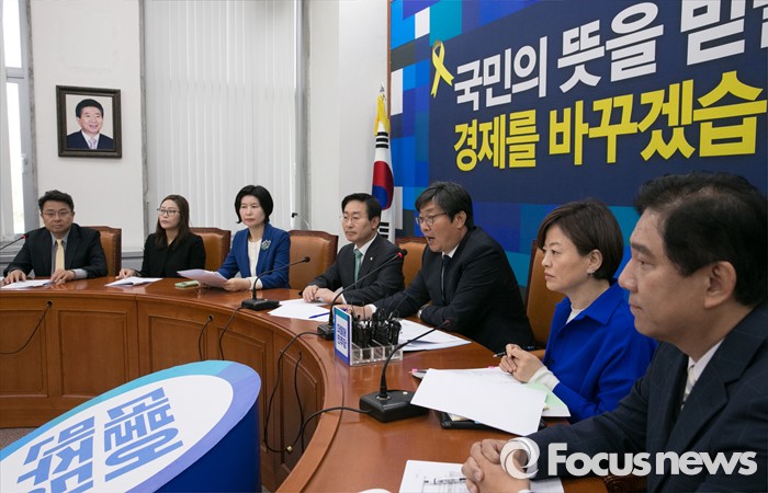 (서울=포커스뉴스) 29일 오전 서울 여의도 국회에서 열린 더불어민주당 보수단체 불법자금지원 의혹규명 진상조사 태스크포스(TF) 1차 회의에 참석한 이춘석 위원장이 인사말을 하고 있다. 왼쪽부터 이철희 당선인, 윤성경 부위원장, 백혜련 당선인, 박범계, 이춘석, 진선미 의원, 김병기 당선인.