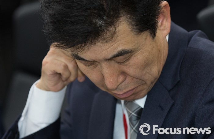 (세종=포커스뉴스) 정세화 한진해운신항만 사장이 25일 오후 세종시 정부세종청사 해양수산부 중회의실에서 열린 해운시장 및 해운동맹 재편 관련 대책회의에 참석해 잠시 얼굴을 만지며 생각에 잠긴 모습을 보이고 있다.