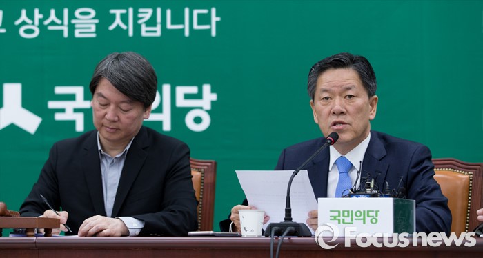 (서울=포커스뉴스) 주승용(오른쪽) 국민의당 원내대표가 25일 오전 서울 여의도 국회에서 최고위원회의에 참석해 모두발언을 하고 있다.