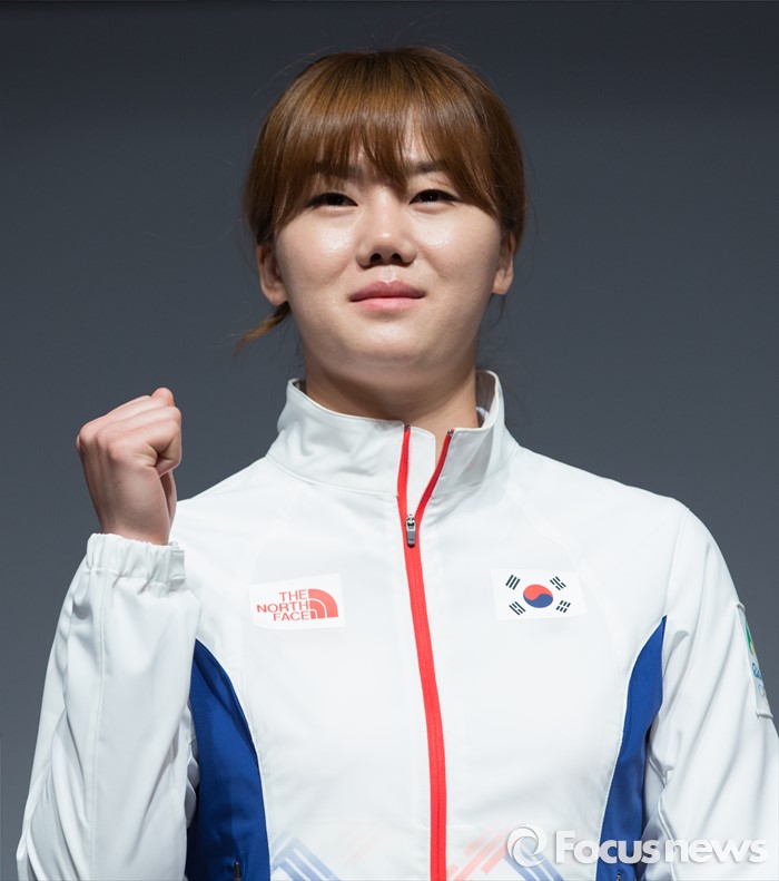 (서울=포커스뉴스) 27일 오후 서울 노원구 태릉선수촌에서 열린 제31회 리우하계올림픽대회 D-100일 미디어데이에서 핸드볼 국가대표 김온아가 리우올림픽 선수단 단복을 선보이고 있다.