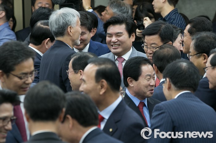 (서울=포커스뉴스) 원유철 새누리당 원내대표가 26일 오전 서울 여의도 국회에서 열린 당선자 워크숍에 참석하며 당선자들과 인사하고 있다.