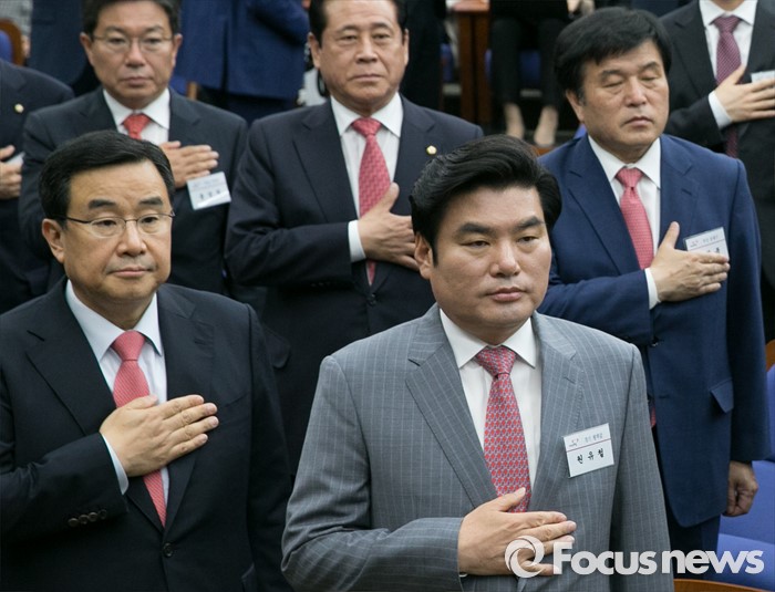| △ 국민의례하는 원유철 |