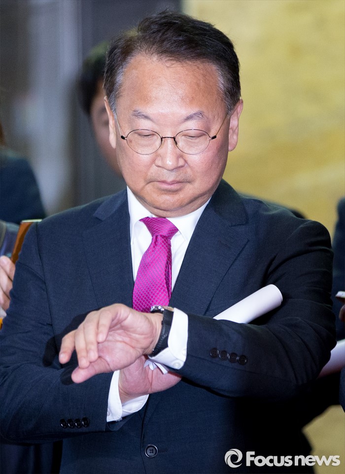 (서울=포커스뉴스) 29일 오전 서울 여의도 국회에서 경제활성화법안 등 처리 요청을 위해 방문한 유일호 경제부총리 겸 기획재정부 장관이 이종걸 더불어민주당 원내대표와 면담을 마치고 이동하고 있다.